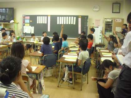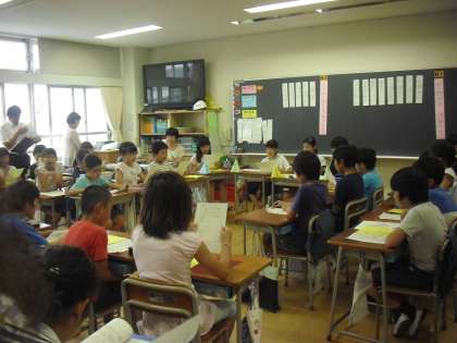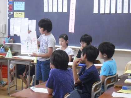 4年生の教室で1学期のお楽しみ会の計画を立てる学級会です。みんながもっと仲良しになるためにというクラス目標に近づく集会の計画です。自分なりの考えをつけ、自分の意見を発表し、みんなが折り合いをつけながら話合いを進めていきました。司会グループの皆さんも、上手に皆の意見を聞きながら話合いを進めることができましたね。