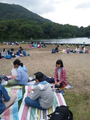 湯の湖畔で昼食をとりました。朝早くからの美味しいお弁当作りをありがとうございました。これからハイキングに出発します。