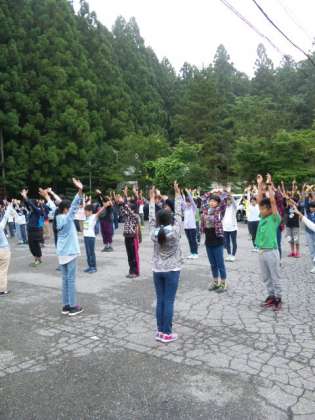 おはようございます。日光2日目の朝は曇り空です。朝の健康観察で検温をし、チェックを受けてから、宿舎前の駐車場で朝会をしました。朝の状況では具合の悪い児童はいませんでした。今日もけが等のないように一日過ごしていきたいです。