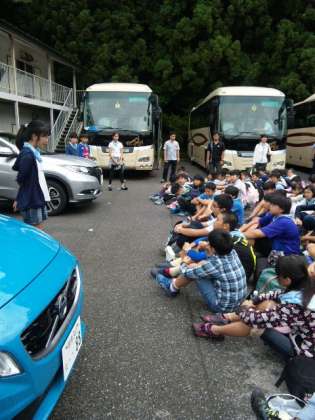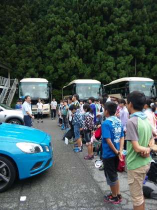 荷物をまとめ お世話になった宿舎の方々と閉園式を行いました。多くの方々に支えられて3日間を過ごせたことを忘れずに、感謝の気持ちを伝えたいです。宿舎を出発し、予定通り日光江戸村に向かいます。