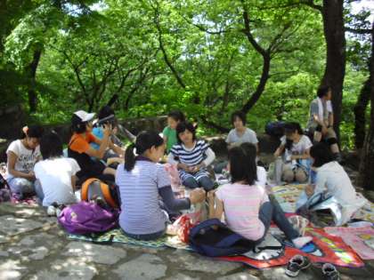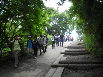 全員が599mの山頂を登り切ることができました。全員で登頂して食べるお弁当は格別です。前日の天候のせいか登山客も少なく、ゆったりと過ごすことができました。そして、今度は高尾山口駅を目指して出発です。