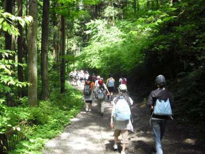 「びわ滝」の清流が涼しげな風を送ってくれます。出発前、自分たちの力で、思い出に残る遠足にしようと出発した6年生。全員で登り切ったことで、その絆がまた強くなったに違いありません。さわやかな一日でした。