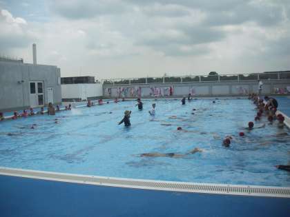 3・4年生の「浮く・泳ぐ運動」ではいろいろな浮き方やけ伸びをすること、補助具を使ってのキックやストローク、呼吸をしながらの初歩的な泳ぎをすることが学習内容となっています。今日はプールの壁や床を思い切りけって、け伸びで進む練習をしていました。まっすぐに長く進むことができましたか・・・・