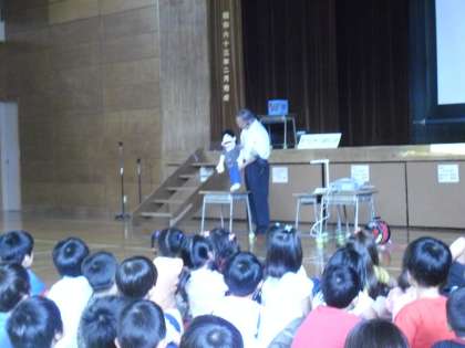 1から4年生は手品や腹話術を交えてとても分かりやすい教室でした。「自分の命は自分で守る」を徹底し安全で楽しい毎日を送りましょう。