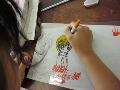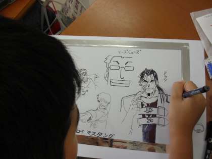 マンガクラブの活動を見に行きました。全員作品づくりに集中しています。写して書いてもいいし、自分で考えて描いてもいいそうです。いくつかの作品を紹介します。