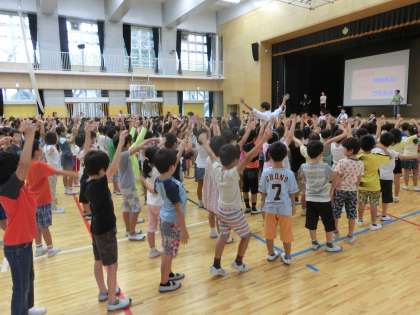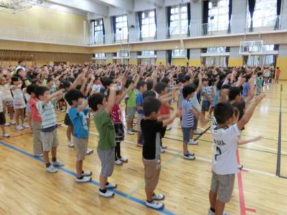 「大きなうた」という題名に負けないような大きな声で歌いました。大きかったのは歌声だけではありません。芦花小音楽朝会名物?!の身体表現も、全身を使った大型サイズでしたね。豊かな身体表現ができる子どもたち、心の豊かさをも体現しているかのようです。