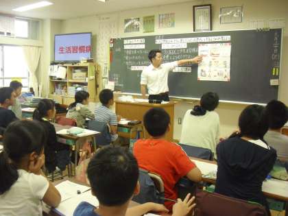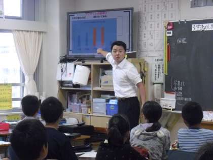 今日は東京教師養成塾の先生との学習です。事前にとったアンケートをもとに生活習慣病が私たちの体にどのような影響を与えるのかを考える授業でした。児童が好んで食べる食べ物に塩分糖分がどのくらい含まれているのかを確認して小学6年生が一日に摂取してよい塩分量、糖分量と比較しました。今日の学習をもとに、健康に良い生活習慣をこれからの生活で実行していけるとよいですね。
