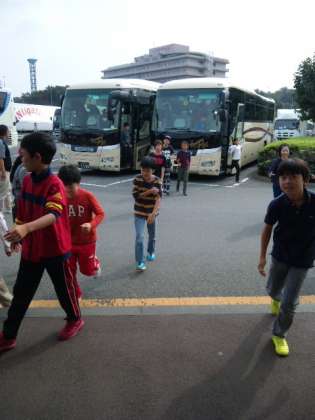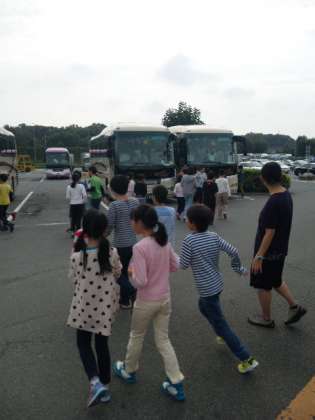 三芳PAに到着し、トイレ休憩をとりました。バスに戻り、バスレクの再開です。