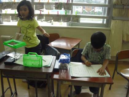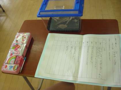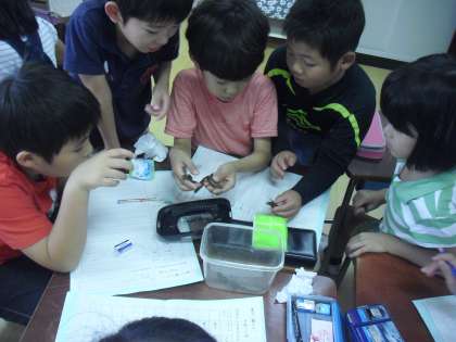 みんなで生き物をのぞきながらよ〜く観察して・・・しっかりメモに残していましたね〜