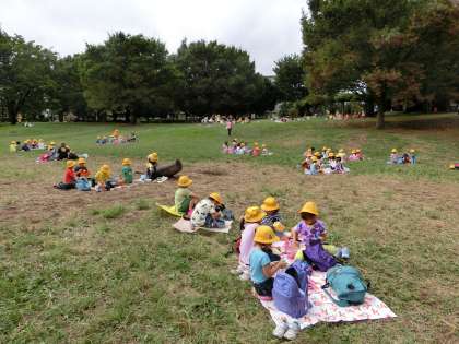 公園では、クラス毎に記念写真を撮影した後、自由遊びをしたり、お弁当に舌鼓を打ったりするうち、あっという間に楽しい時間が過ぎ去っていきました。美味しいお昼のご準備をありがとうございました!