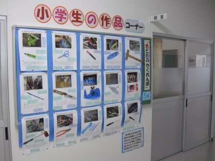 小学校は家庭科室の隣の掲示版です。中学校は小学校との境目を越えたすぐの図書室の掲示版です。ぜひ見に来てください。