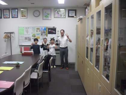 おはようございます。今日はぱらぱらと雨が落ちてきていますが、子どもたちの心は晴れやかな様子です。今日は日本の文化・伝統を学ぶ芦花高校で英語を教えているケビン先生が来てくださいました。みんなと百人一首などの活動をしてくださいます。今日はケビン先生と一緒に、はいポーズ、パチリ・・・です!!