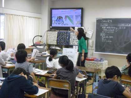 5年生の教室では交通事故を防ぐためにどうすればよいのかというけがの予防の学習をしていました。書画カメラで大きく拡大された画面をもとに、街の中のさまざまな隠れた危険について考え、交通事故を防ぐための工夫や努力について学びました。今日の学びが日常の活動に、「生きてはたらく力」となってくれるとよいです。