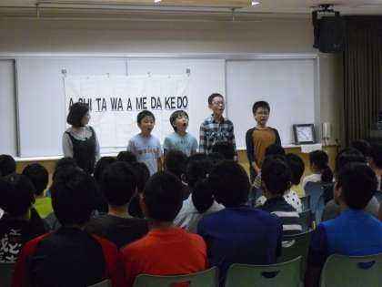 劇団四季の方をお迎えして、日本語の話し方の学習です。母音をはっきり発音する・・トいう大事なことを改めて確認しましたね・・・