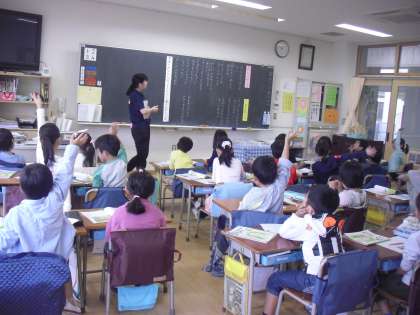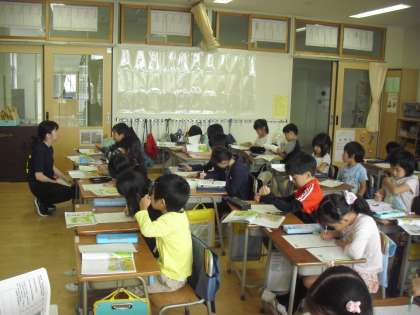 1年生の教室で、約束やきまりを守る態度を育てる学習です。