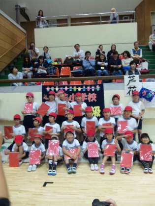 参加賞をもらいみんなで記念撮影をしました。今日一日頑張りました。保護者の皆様も朝早くからのお弁当作りと応援をありがとうございました!