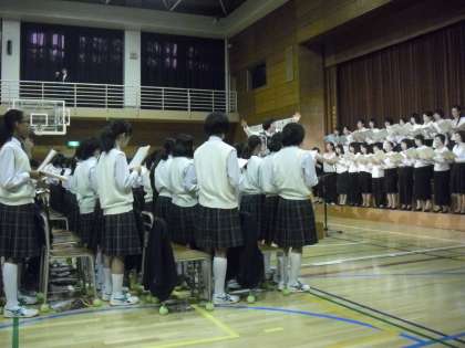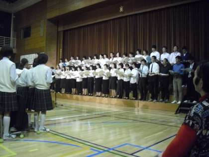 PTAコーラスの後の全員合唱です。素敵な歌声が体育館に響いていました。