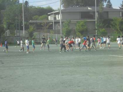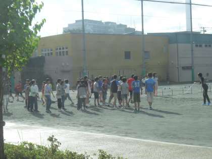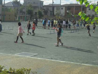 おはようございます。朝から太陽がのぞく一日の始まりです。さっそく校庭での外遊びもスタート・・・・6年生は今週の連合陸上競技大会に向け、長縄跳びの練習に励んでいました。