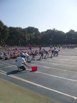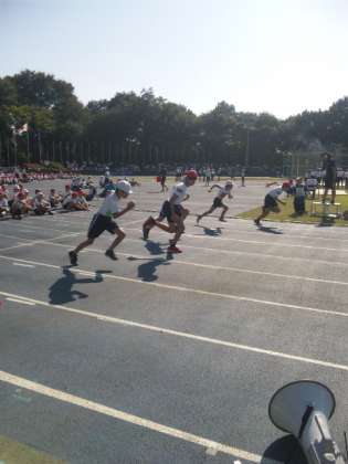 男子の午後の競技が始まりました。スタートに気をつけて前傾姿勢で前に進みます。