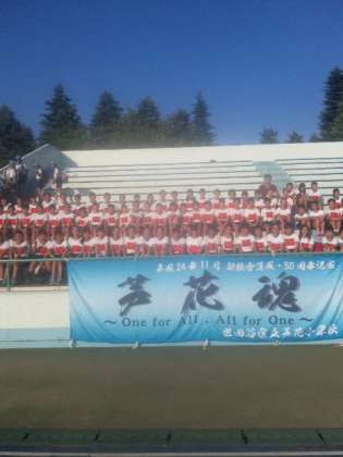 連合陸上競技大会が終わりました。最後に6年生全員で記念撮影です。これから学校に戻ります。