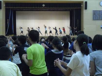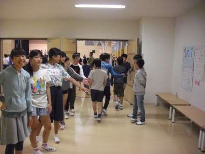 おはようございます。6年生のお出迎えでみんなが体育館に集まり、児童集会のスタートです。ゲームあり、ダンスありで盛り上がりました。最後は音楽に合わせて教室に向かいます。いつも6年生の行進が下級生のお手本となっています。