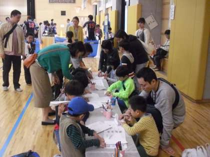 芦花小学校の体育館では、芦花小新BOP学童クラブ父母会主催の、ロカボロまつりが開かれています。