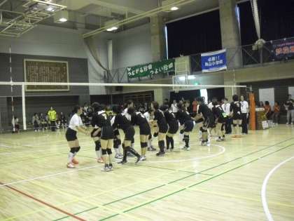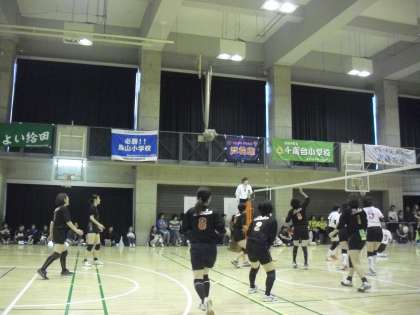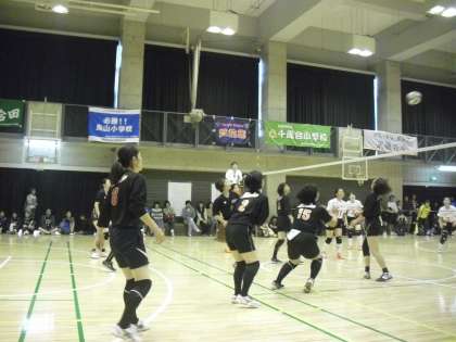 烏山北小学校の体育館では、PTA第5ブロックのバレーボール大会が開催されています。第3試合に出場した芦花PTAチームは、初戦の千歳台小に勝ち、次の試合に進むことが決まりました〜
