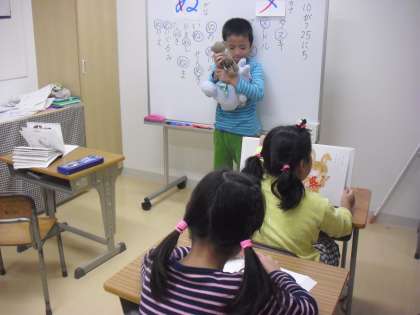 最後はひらがな絵本の音読・・・、「ぬ」のつく「ぬいぐるみ」のお話を音読しながら、ミニ寸劇を演じていました。