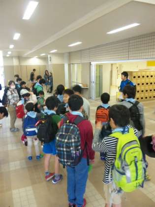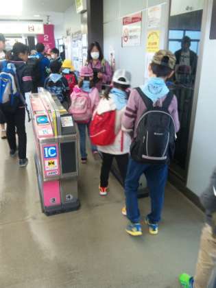 ひかり学級の校外学習です。切符を買い、電車に乗り、今日は水族館に行ってきます。出発式を済ませ、駅に着きました。