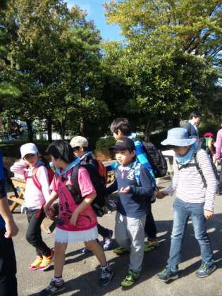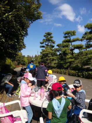 見学の後、天気もよいのでみんなで外でお昼を食べました。 朝早くからのお弁当つくりありがとうございます。これから見学の続きです。
