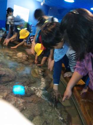 ドクターフィッシュとのふれあいを楽しんで水族館とお別れです。これからまた電車の乗り方などを練習しながら学校に帰ります。