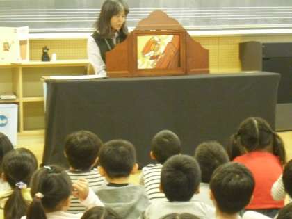 地域の読み聞かせ活動をしてくださる方々においでいただき、2年生が出張お話会を開きました。紙芝居を聞き、指人形と一緒に楽しい活動もして・・・楽しいお話のひと時になりましたね。お話会の皆様、いつもありがとうございます。