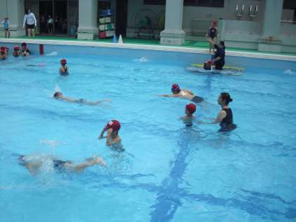 今日はこんなにたくさんの方たちに来ていただけました。そこで今日は、子どもたちを泳力に合わせてグループに分けをしていました。丁寧な指導に子どもたちも答えて、とても充実した水泳指導の時間でした。
