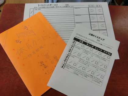 体育の学習と聞くと、校庭や体育館で身体を動かしている子どもたちの姿が浮かんできます。しかし、それが全てではありません。学習カードへの記入を通して、体育的な思考・判断力を深めたり、意欲を高めたりしていくことも欠かせません。教室でカードのファイルを整理している時間に出会ったワンショットです。