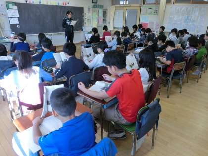 とある教室では、一言一句間違わず正確に、かまずに読むことを目標に、教材文の全文を音読するトライアルが繰り広げられていました。これはなかなか難しい!! ミスしてしまった友達を責めるのか、「ドンマイ!」と励ますのか、周囲の反応も見ものです。チャンスが何度か与えられましたが、この日は残念ながらクリアならず。また次回、クラス全員で取り組むことを約束していました。がんばれ!!