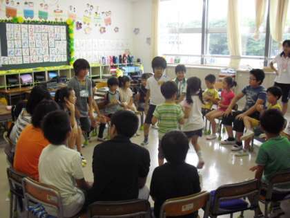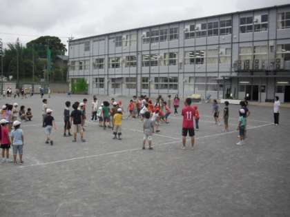 朝は、異学年交流のフレンドワールドがありました。1年生と6年生、2年生と5年生、3年生と4年生が縦割りで遊びを通して交流します。校庭では2年生と5年生がドッジボールを楽しんでいました。教室では、それぞれに工夫した遊びを考え、仲良く過ごすことができました。