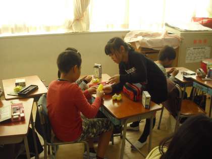 3年生の豆電球のつなぎかたの学習に向け、実験セットの組み立てをしていました。説明書を読みながらみんな真剣に組み立てていましたね。