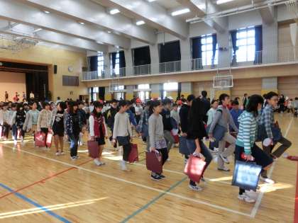 集会終了後、暗幕を開けて会場の原状復帰に協力する子、心と動きの揃った行進を実践し集団行動の手本を示す子、出口であいさつとハイタッチをして見送る子・・・芦花小では日常となっている頼もしい行動が、今日もあちらこちらで輝いていますね。