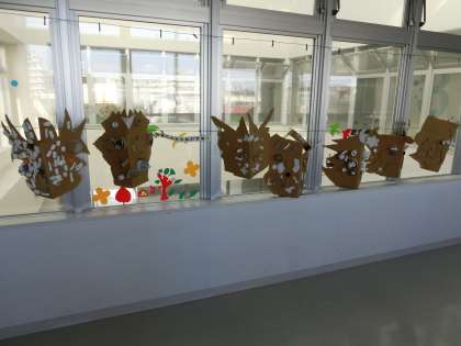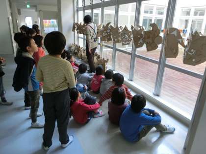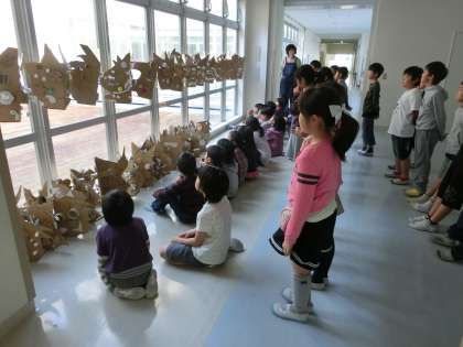 真剣に図工の作品と向き合っている3年生、いったい何をしているのでしょう。まだ制作途中である自他の作品を見つめ、これからの作業の見通しを立てたり、よりヴァージョンアップを図っていく構想を練ったりしているのでした。「つくりかけギャラリー」に並んだ作品群がどんな具合に完成していくのか、今後を楽しみにしていますよ。