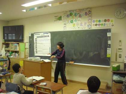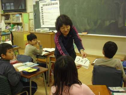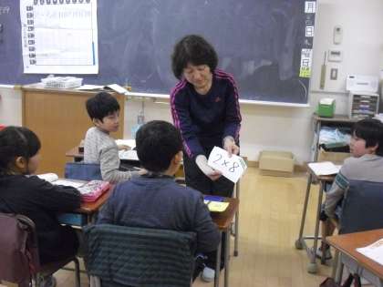 授業のはじめにフラッシュカードを使って、かけ算九九の確認です。