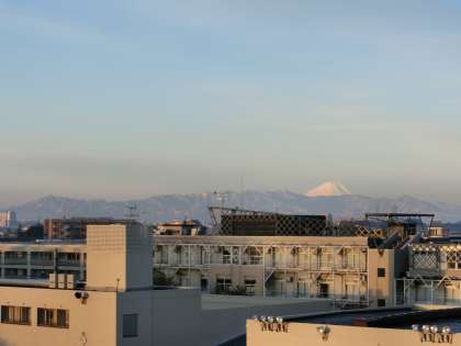 屋上からは雪富士はもちろん、真っ白な丹沢や奥多摩の山並みがくっきり! これは例年だと1月や2月の光景です。