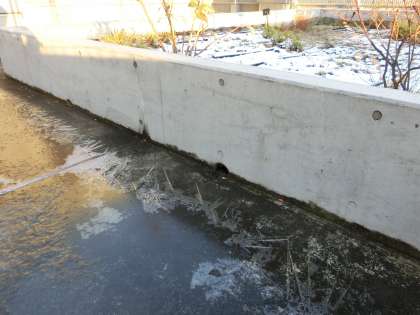 至る所がコチコチツルツルに凍っています。厚い氷も張っていました。登校時、道路でスッテンコロリンしませぬように。