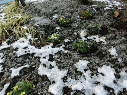 先日、グリーンボランティア活動で植えたばかりの球根園には、ザックザクの大きな霜柱が! 目で楽しむだけにして、おもしろがって、踏み荒らさないでくださいね。