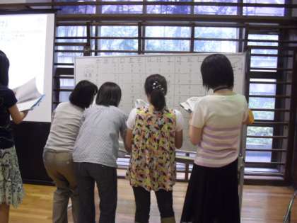 中学校の格技室で、第1回目の家庭教育学級を行いました。講師には、地域運営学校の学校運営委員でもある金沢工業大学教授 三谷宏治さんをお招きし、決める力、意志決定力について演習を交えながらお話いただきました。グループワークでは「落墜、そして」という飛行機の落墜を想定し、14のアイテムを優先順位をつけて選びます。それを話し合うことにより組織としての優先順位としていきます。参加された保護者の方々は大変盛り上がりました。
