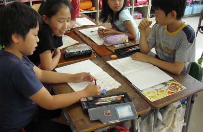 芦花小学校では、学び合いのある授業を目指し、教員も研修を続けています。