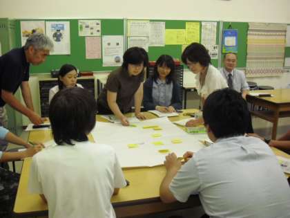 放課後、小中合同研究会を行いました。全体会のあとは、4つのグループに分かれて児童・生徒理解を深めるための話し合いを中心に進めました。指導の手だてについて、それぞれの立場から意見を交換していくことは、互いの校種への理解を深めるとともに、新鮮な視点から教育を見つめることにもつながります。これからも、子どもたちのために小中学校が協力して教育活動を進めていきます。