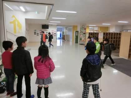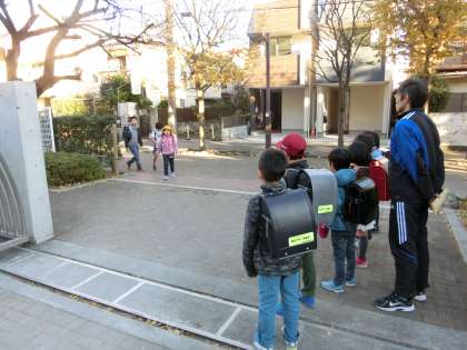 北門に立っている子たちの中を、木枯らしが容赦なく吹き抜けていきますが、寒さを振り払うが如く元気に発声しているのはさすがですね。