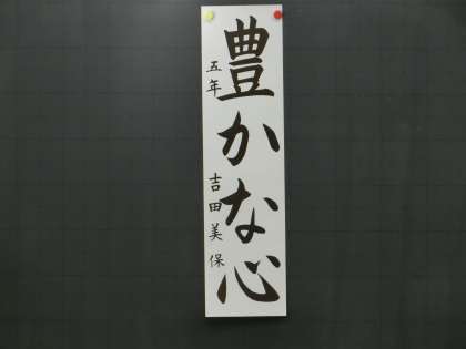 新年へ向けての書写授業です。5年生がお手本の課題文字と出会い、じっくりと学習準備を行っている場面でした。一文字一文字、心を込めて「豊かな心」の表現を成し遂げましょう。そして、最上級生への階段を歩み続ける5年生たちが、そんな心をもって、未来の芦花小を支えていってほしいと期待せずにはいられません。