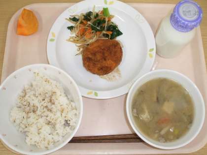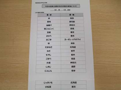 ご当地グルメとして知られる「ゼリーフライ」は、埼玉県行田市の郷土料理です。おからを主としたタネを“小判(銭)形”に丸めて油で揚げます。やわらかくてふわふわした食感で、給食室での配缶もそっとそっと行いました。