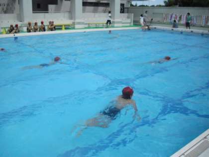 5・6時間目に6年生が体育で水泳の授業を行いました。9月に行われる水泳記録会に向けての取り組みです。自分の泳ぎを確かめながらエントリーする種目を選びます。自分の記録を確認しながら決めていきます。小学校最後の水泳で、自分自身の記録更新に挑みます。